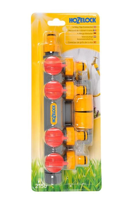 The Hozelock 4 Way Tap Connector allows a single garden tap to be divided into four outlets, each with its own flow control. It can also be used to connect up to two