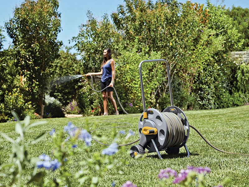 This Hozelock large Hose Reel with 25m hose can hold up to 60m of 12.5mm hose and comes with a durable metal handle to make moving the Hose Cart easy. It is extra wide for stability and has been designed so the hose is easy to rewind.