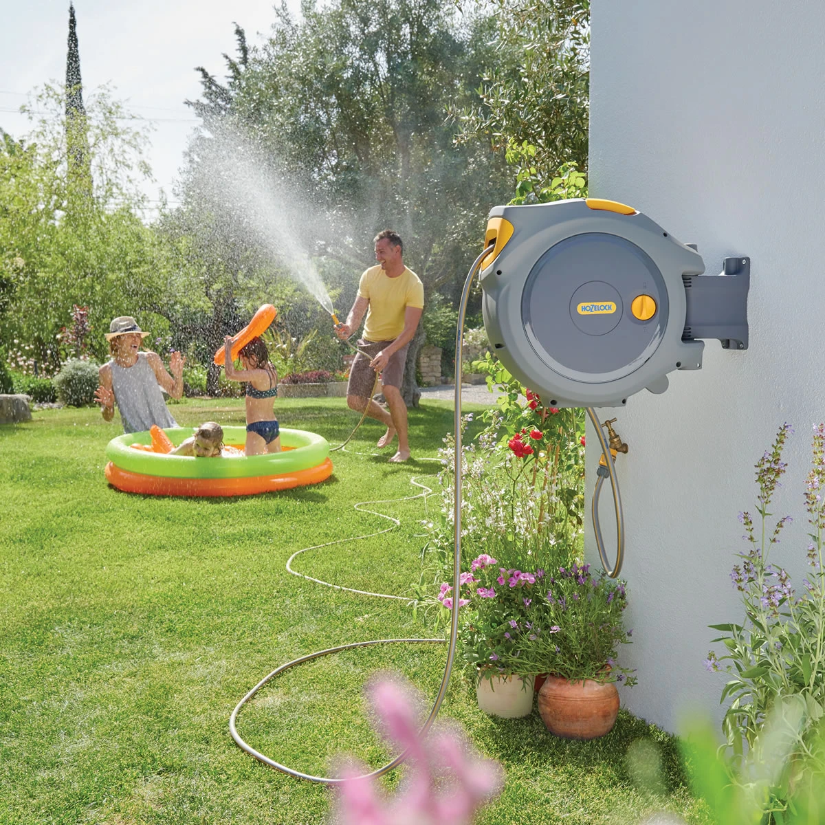 The 30m Auto Reel is a high quality spring loaded hose system available from Hozelock.